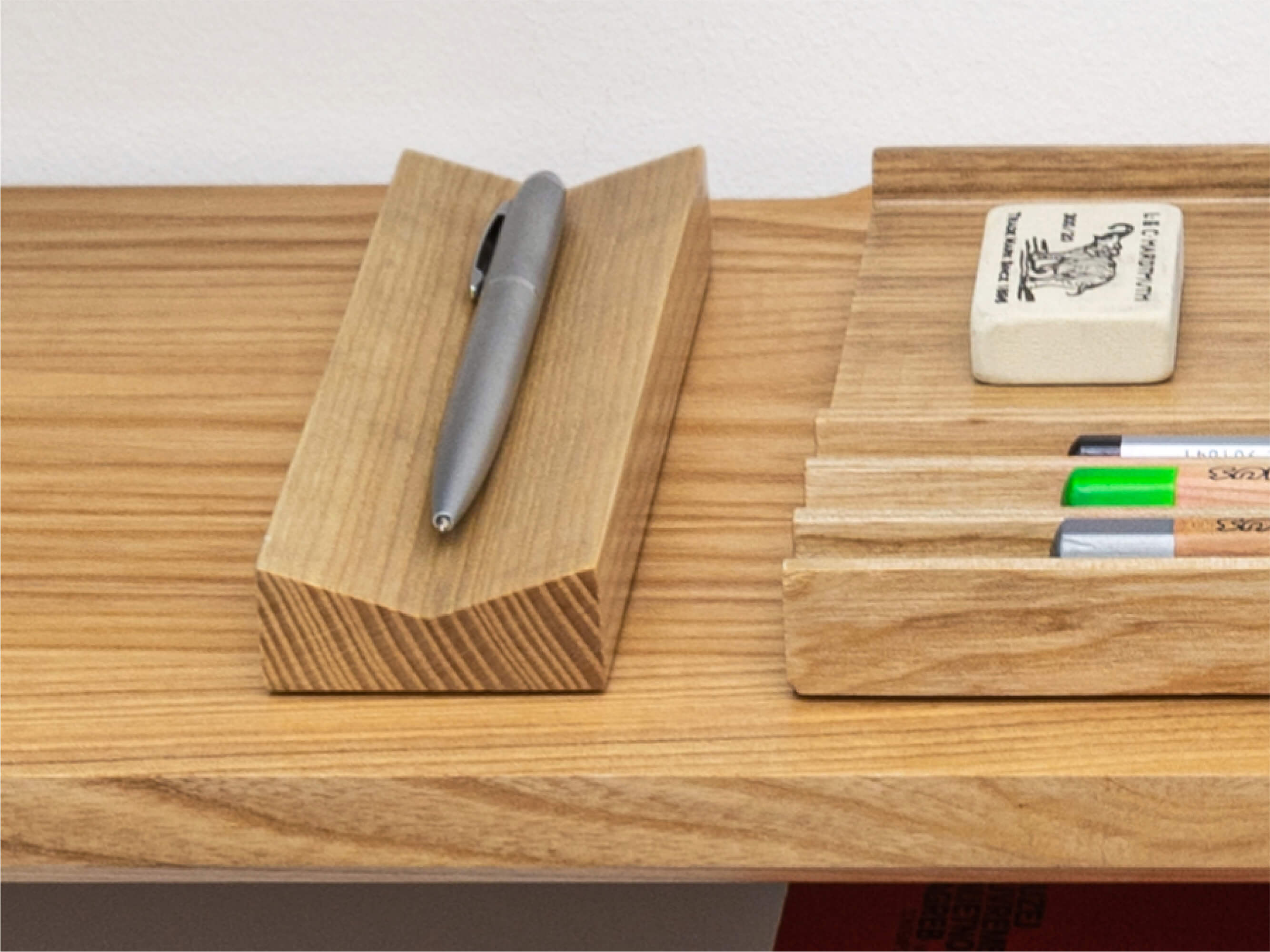 PE:PL prevents pens and pencils from rolling off your table by providing a designated space for them. This keeps your workspace organized and reduces distractions when you need to grab a writing instrument. Its compact design also allows for space-saving storage.